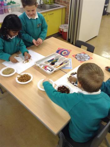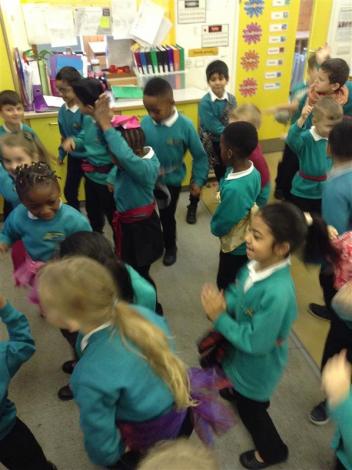 Our topic this term is celebrations. We had a Diwali day yesterday and learnt all about the celebration and why it takes place. First we started the day by reading the story of Rama and Sita. The children loved the monkey king Hanuman but didn't like the demon king Ravana! We took part in different activities including designing henna for our hands, creating Rangoli patterns using rice and pasta and making diva lamps using salt dough. Then we tried a little bit of Bollywood dancing, the children loved wearing a scarf and copying some of the actions.
